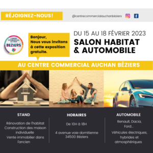 Salon Spécial Immo et Auto du 15 au 18 février. Nombreuses infos et découvertes pour améliorer votre intérieur et votre mobilité